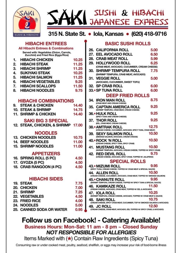 Iola, KS Listings Dining Shopping Leisure Highest Rated Dining Tina's Place $ 9 reviews American (620) 380-6663 110 N Taylor StIola, KS 66749 Wild Bloom Coffee $ 7 reviews Coffee & Tea, Salad, Bagels (620) 418-3271 102 S Washington AveIola, KS 66749 King's Sandwich Shop $ 39 reviews Sandwiches, Burgers (620) 365-6271 321 S State StIola, KS 66749 El Jimador $ 2 reviews Mexican (620) 365-7300 902 N State StIola, KS 66749 Sharky's $ 2 reviews Seafood, Tacos, Soup (620) 305-2595 112 S WashingtonIola, KS 66749 Saki $ 1 reviews Japanese, Sushi Bars (620) 418-9716 315 N State StIola, KS 66749 China Palace $ 35 reviews Chinese (620) 365-3723 110 N State StIola, KS 66749 Sam & Louie's Italian Restaurant & New York Pizzeria $$ 22 reviews Pizza, Italian, Sandwiches (620) 380-6900 2150 N State StIola, KS 66749 Rookies Sports Bar & Grill $ 8 reviews New American, Sports Bars, Burgers (620) 228-5322 105 E JacksonIola, KS 66749 El Charro of Iola $ 35 reviews Mexican (620) 365-7771 17 W Madison AveIola, KS 66749 Daylight Donuts $ 5 reviews Donuts, Breakfast & Brunch, Sandwiches (620) 363-5006 1319 E StIola, KS 66749 A&W Restaurant $ 21 reviews Burgers, Fast Food, Hot Dogs (620) 365-3011 1421 E StIola, KS 66749 Los Potrillos image/svg+xml $ 3 reviews Mexican (620) 380-6776 1303 N State StIola, KS 66749 Casey's image/svg+xml $ 5 reviews Pizza (620) 287-2704 712 E Madison AveIola, KS 66749 Sonic Drive-In $ 2 reviews Burgers, Fast Food, Ice Cream & Frozen Yogurt (620) 365-5282 301 W MadisonIola, KS 66749
